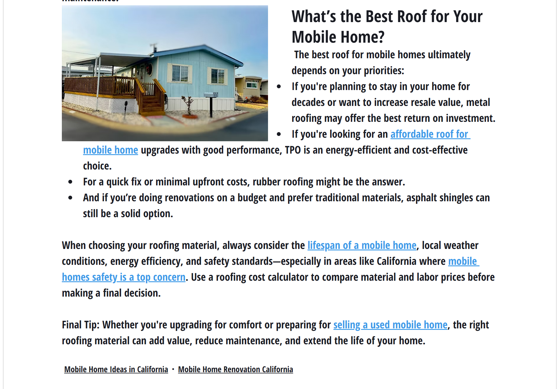 “Learn more about mobile home roof lifespan in California.”
