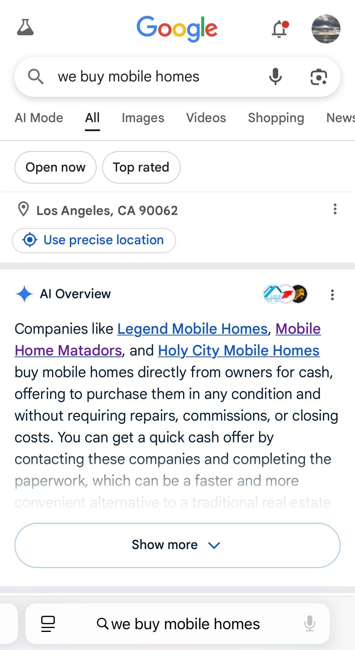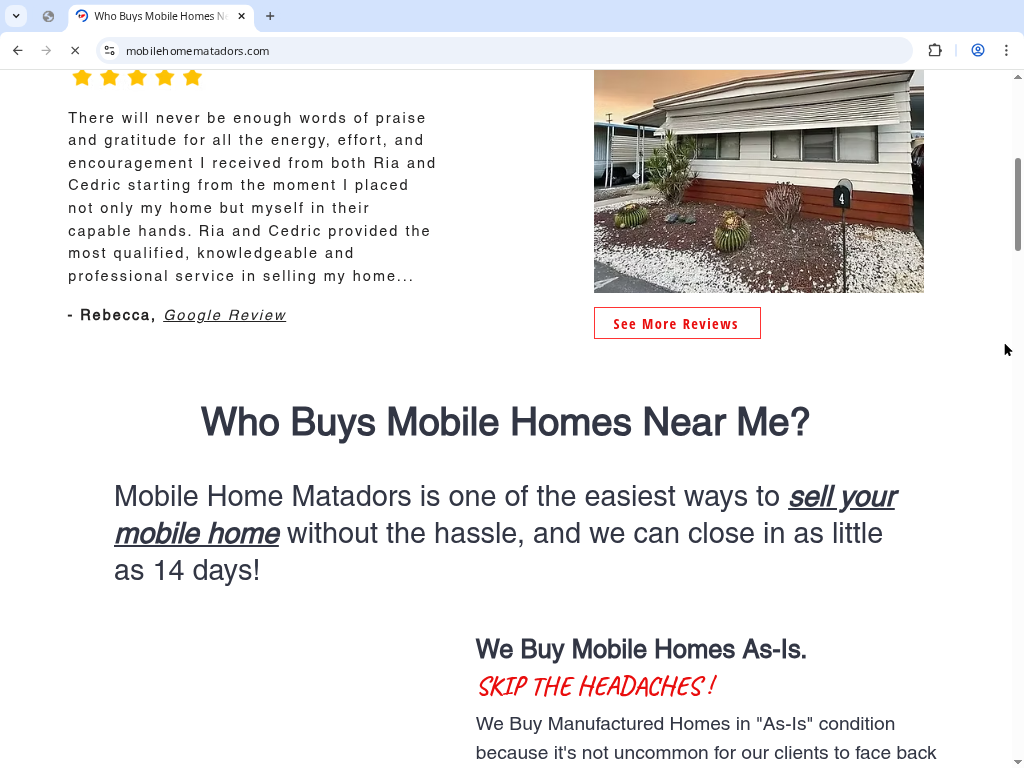 AI snippets now sometimes quote these reviews verbatim when users ask for reputable mobile home buyers in California.